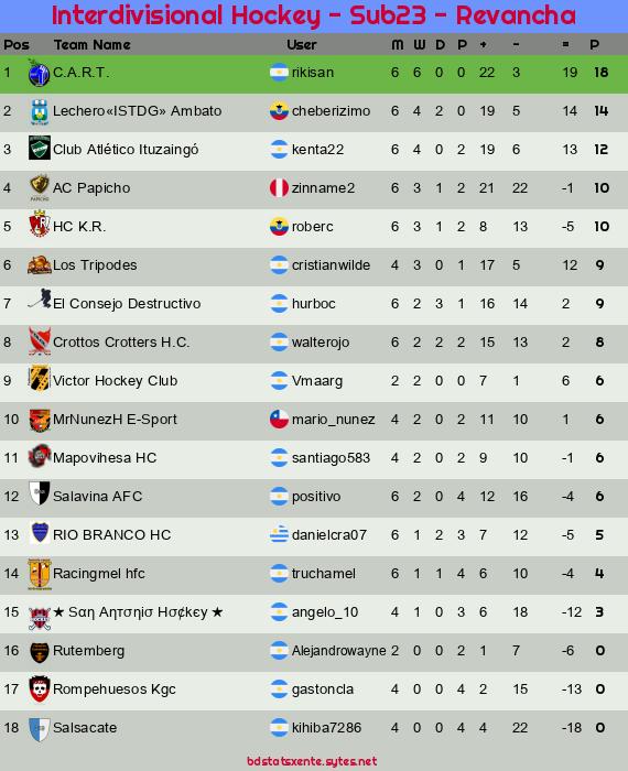 Widgets: Interdivisional Hockey - Sub23 - Revancha