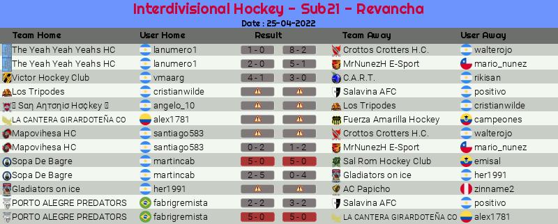 Widgets: Interdivisional Hockey - Sub21 - Revancha