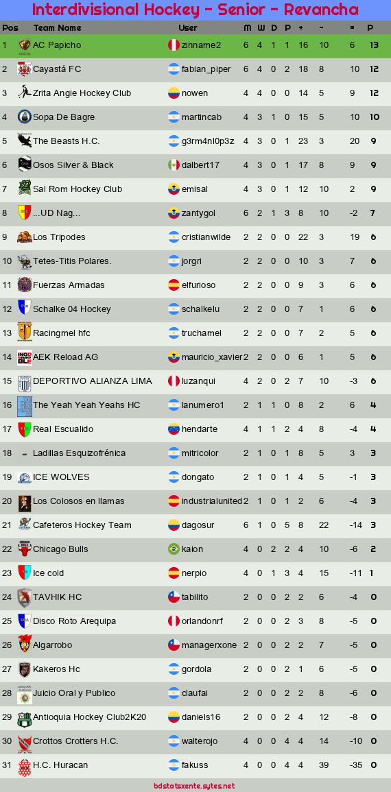 Widgets: Interdivisional Hockey - Senior - Revancha