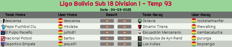 Widgets: Liga Bolivia Sub 18 Division 1 - Temp 93
