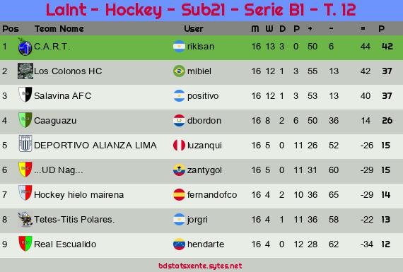 Widgets: LaInt - Hockey - Sub21 - Serie B1 - T. 12