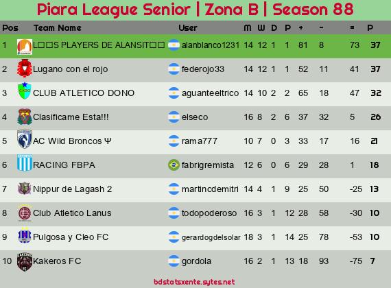 Widgets: Piara League Senior | Zona B | Seaѕon 88