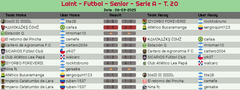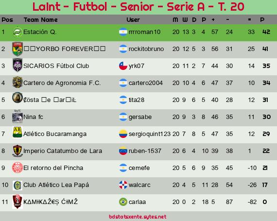 Widgets: LaInt - Futbol - Senior - Serie A - T. 20