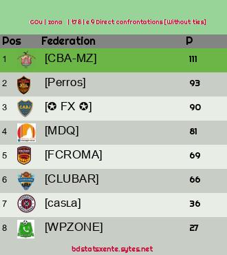 Direct confrontations [Without ties] |