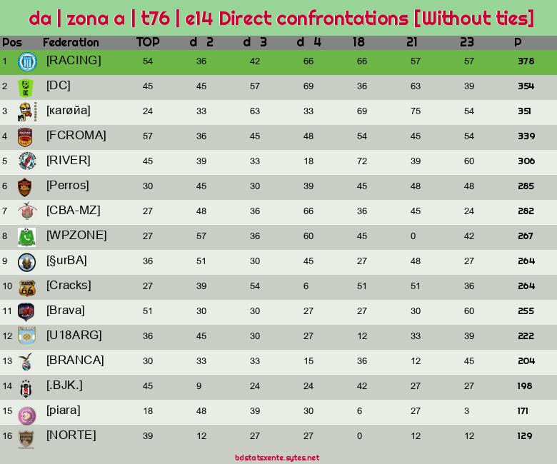 Direct confrontations [Without ties] |