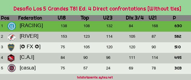 Direct confrontations [Without ties] |