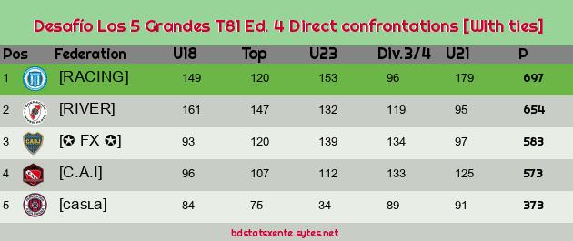 Direct confrontations [With ties] |